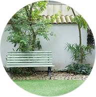 お庭に自然な彩りと癒しを与えてくれる人工芝や植栽。季節が感じられる空間をつくることが可能です。