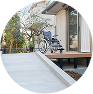 玄関にスロープを設置することで、車いすやベビーカーの出入りがスムーズに。家族みんなが快適な住まいになります。
