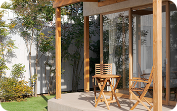 心が落ち着くような癒しの空間づくりをお手伝いします。自然素材にこだわった、ワンランク上のお庭をご提案。テラスやウッドデッキと組合わせることで、より洗練された雰囲気に仕上がります。
