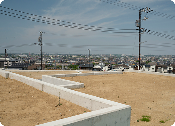 住宅地開発の第一歩となるのが、宅地造成工事です。斜面や山林・谷地などを整地し、戸建て住宅が建てられるようにしたり、大規模な土地を区画分けして造成したりします。